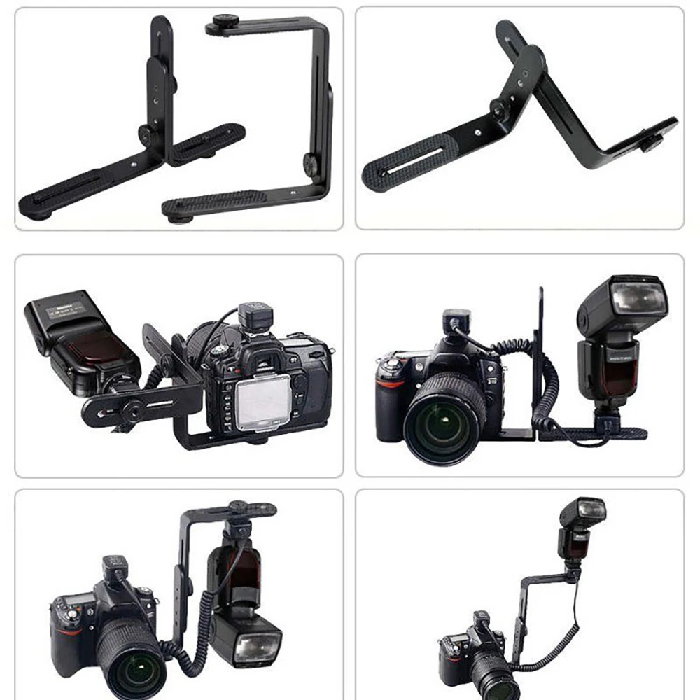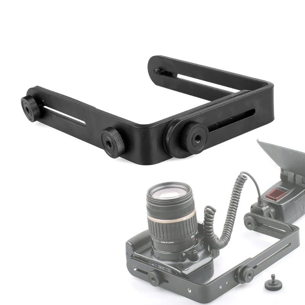 Buying Guide Universal Double L-Shaped 1/4"Thread Metal Flash Bracket Holder Mount For Canon Nikon DSLR Speedlite LED Flashlight Camera Stand